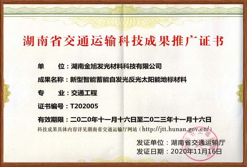 湖南金旭發光材料科技有限公司于 2016年成立,注冊資金1000萬元,是一家專業從事蓄能自發光反光材料的研發、生產與銷售的高新技術企業,于2018年獲得省工信廳認定的省級新材料企業。